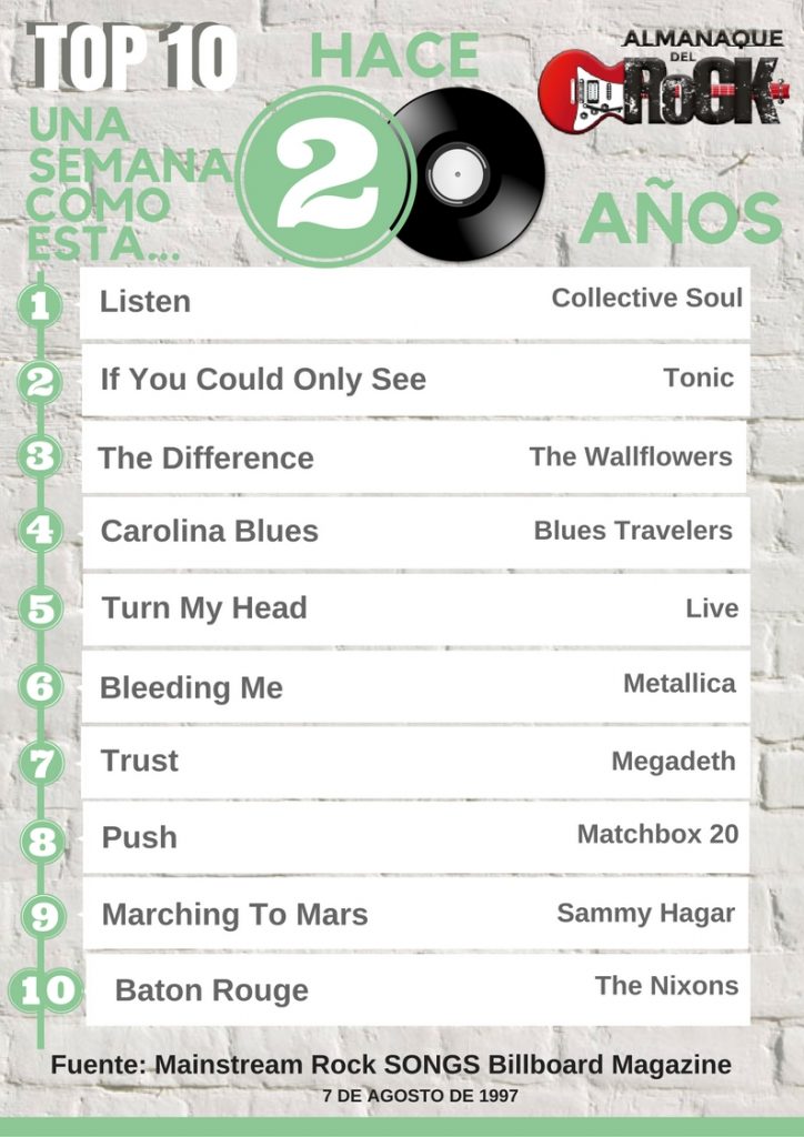 Y en el #5 aparece ‘Turn My Head’, una canción del grupo de rock alternativo Live, que fue lanzado como un sencillo de su álbum del ’97, Secret Samadhi.