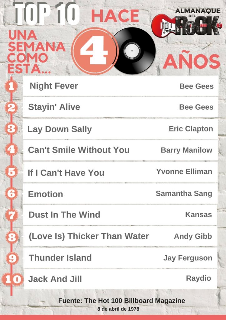 Pero, ¿cómo estaba la lista del TOP TEN de principios de abril de aquel 1978, hace 40 años?